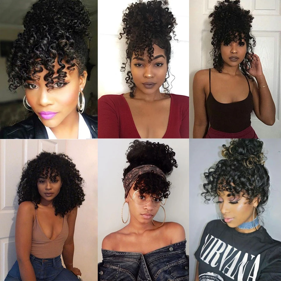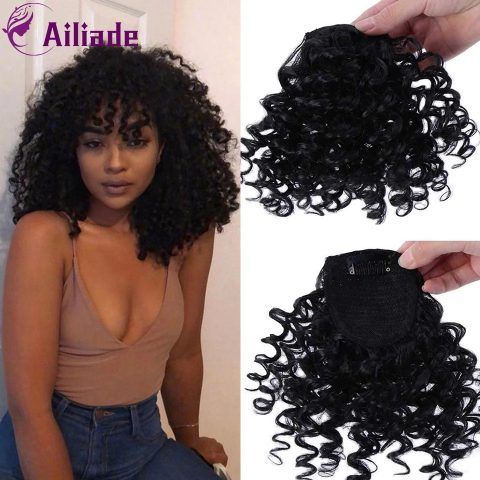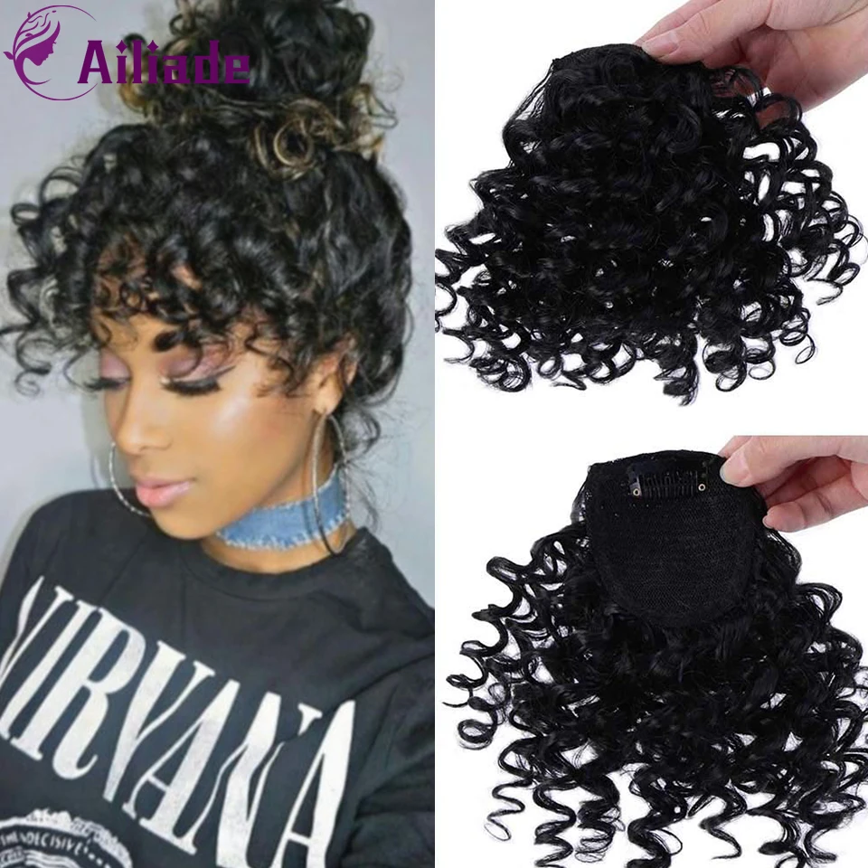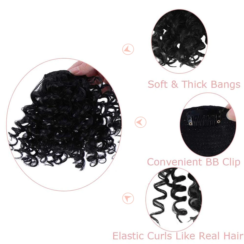 AILIADE Women Afro Kinky Curly Bang Fake Fringe Clips In Bangs Wig Hair Natural Black Bang Synthetic Hair Extension
