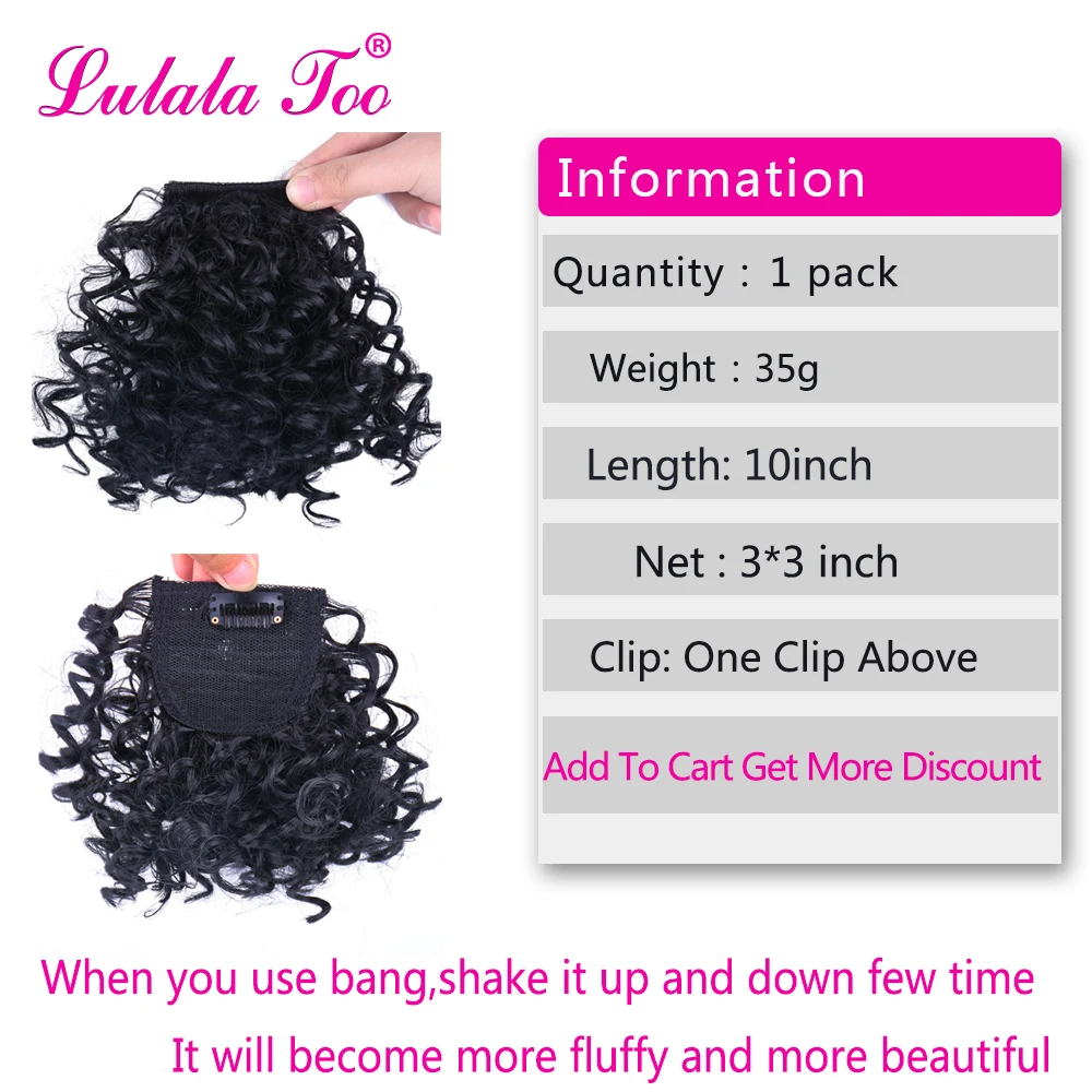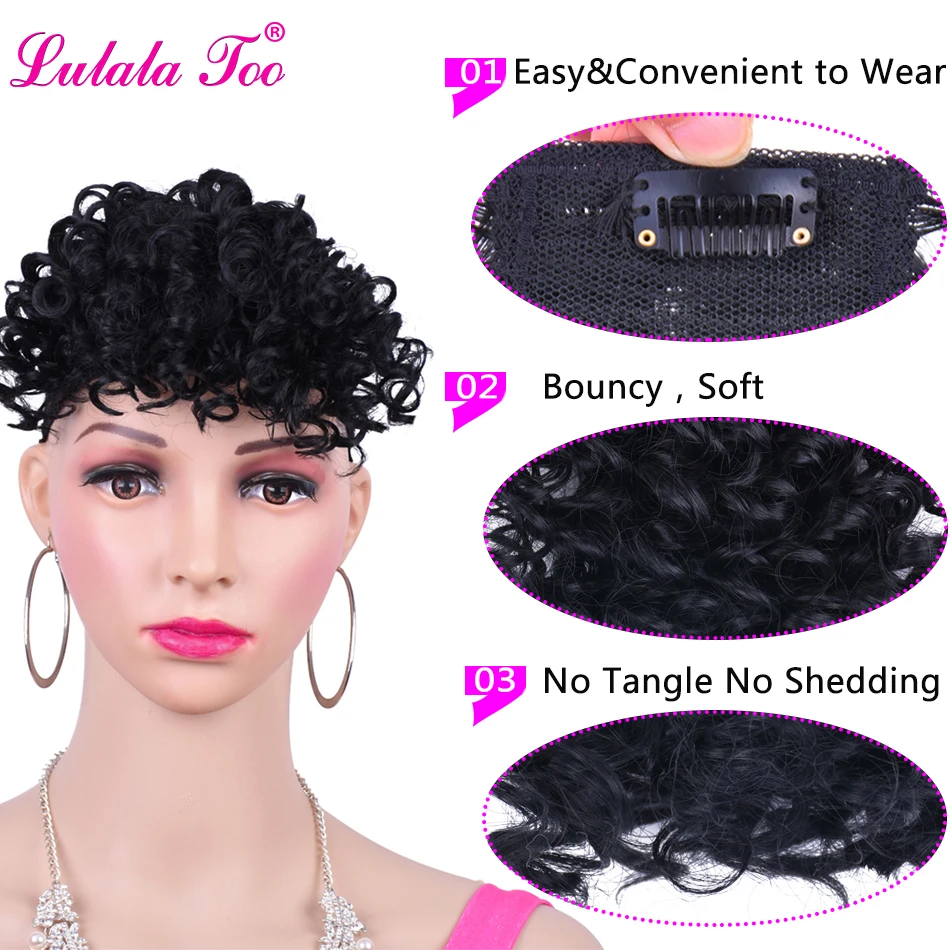 Afro Kinky Curly Bang For Woman Fake Fringe Clips in Bangs Wig Hair Closure Natural Black Synthetic Hair Extension