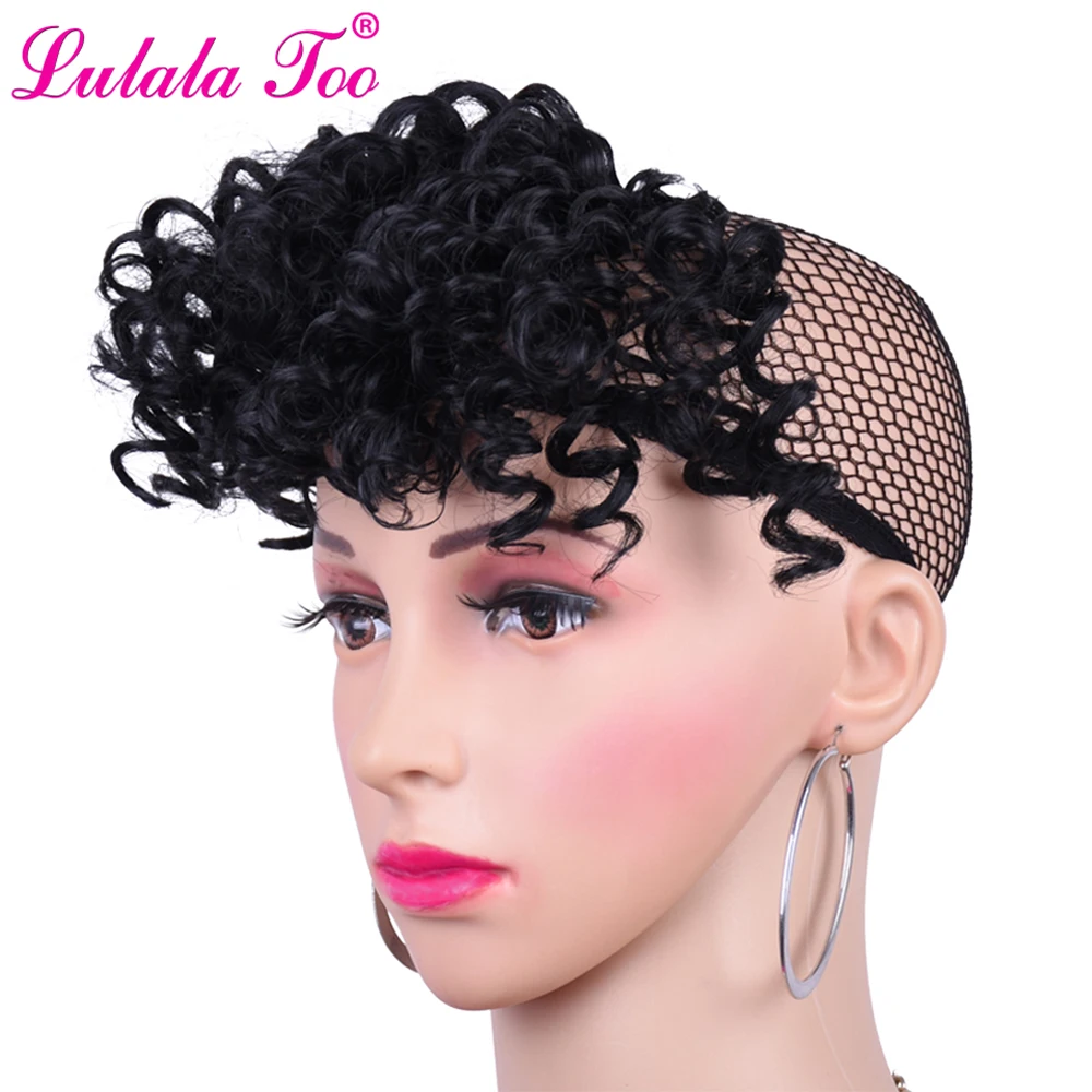 WTB WIG bangs False Short Flat Bangs Two Side Clip On Curly Bangs Black Fringe Hair Extensions Synthetic Clips in Hair
