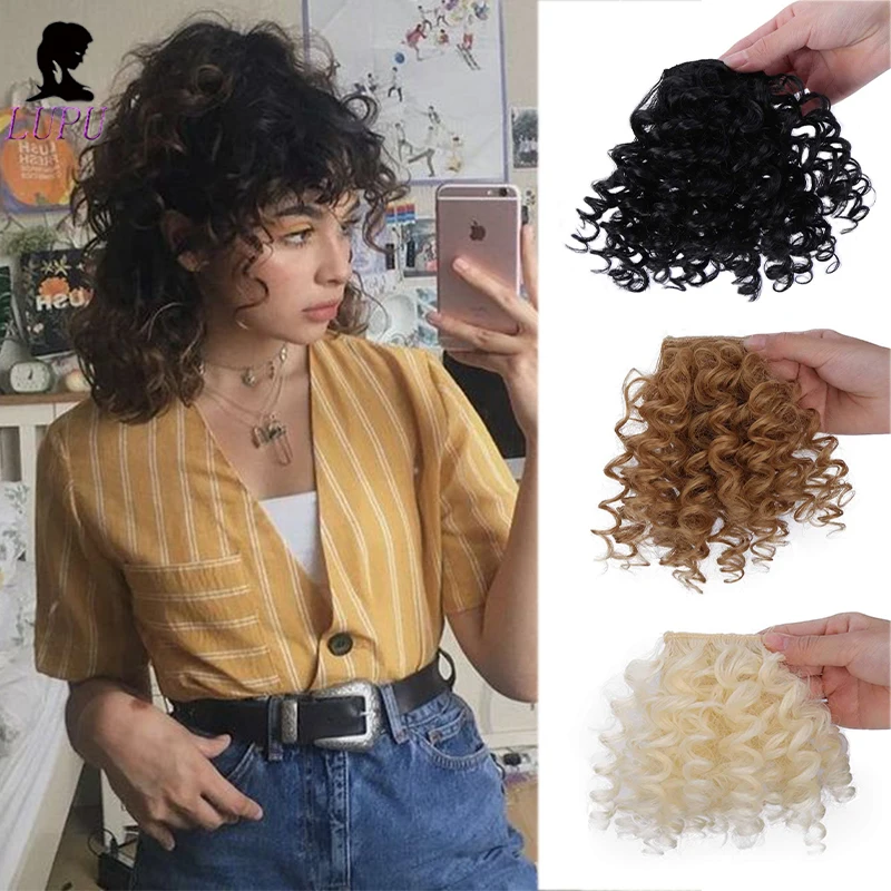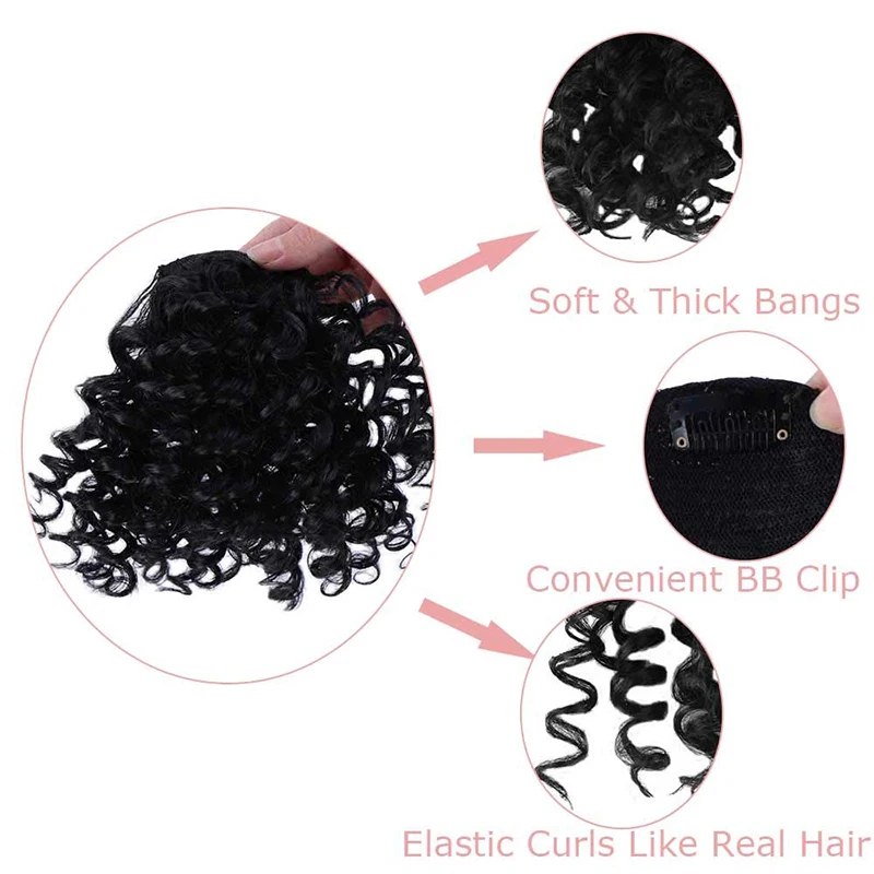 Afro Kinky Curly Fringe Bangs Wig Extensions For Women Natural Black Hairpieces Heat Resistant Fiber Synthetic Clip in Hair