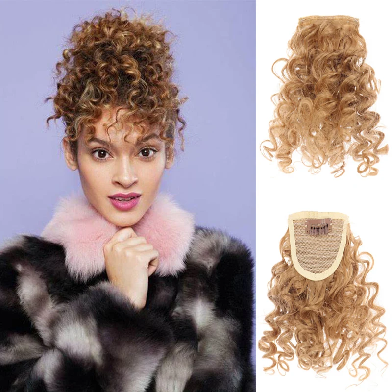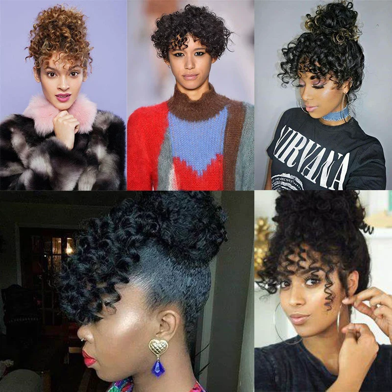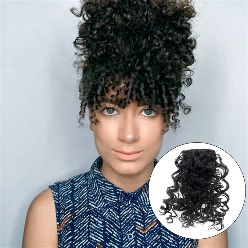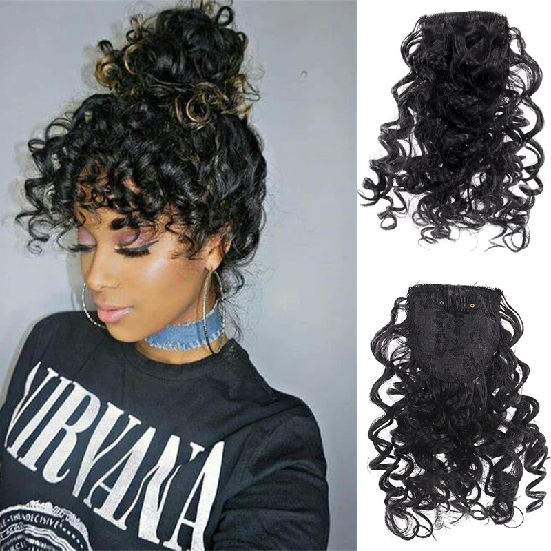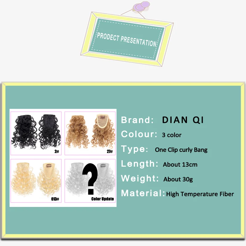 DIANQI women afro kinky curly bang fake bangs fringe hair clips natural black wigs synthetic hair extension
