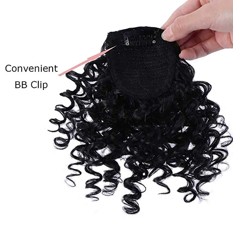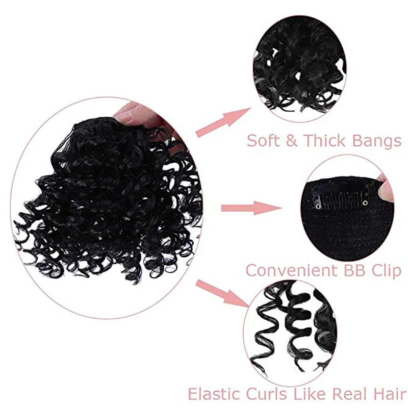 HOUYA Fake Fringe Kinky Curly Clip in Bangs Wig False Natural Hair Bangs Synthetic Hair Pieces For Women