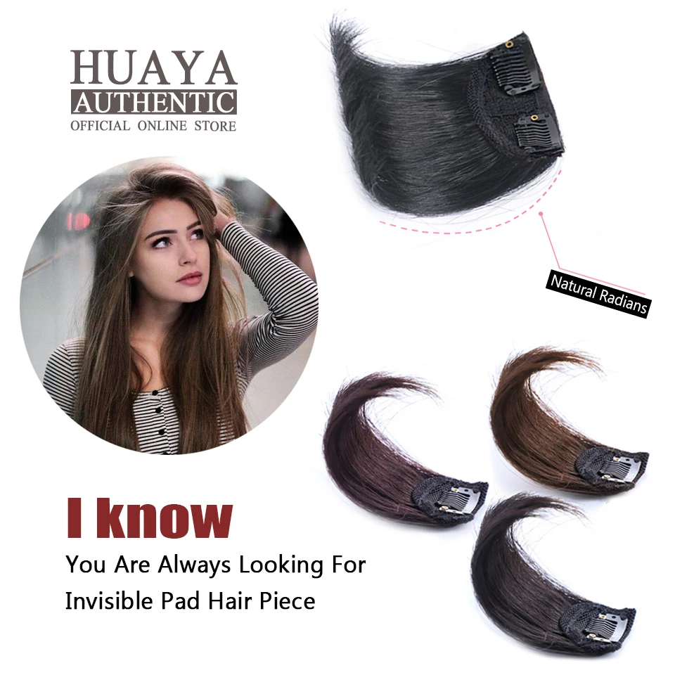 HUAYA Women Pad Hair Pieces Heat Resistant Fiber Synthetic Wig One-pieces Short Straight Pad Hair Clip Fluffy Black False Hair