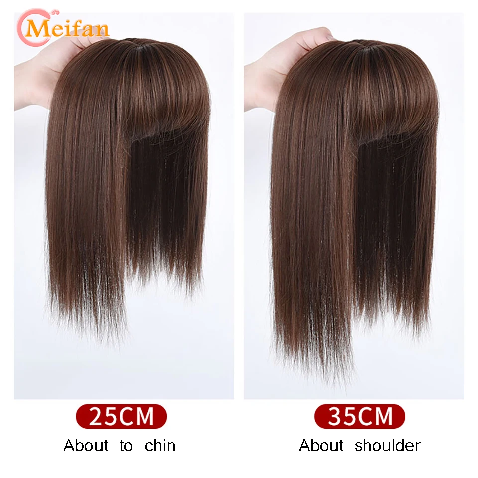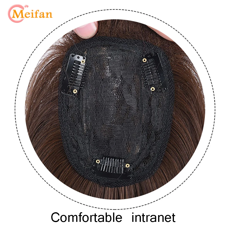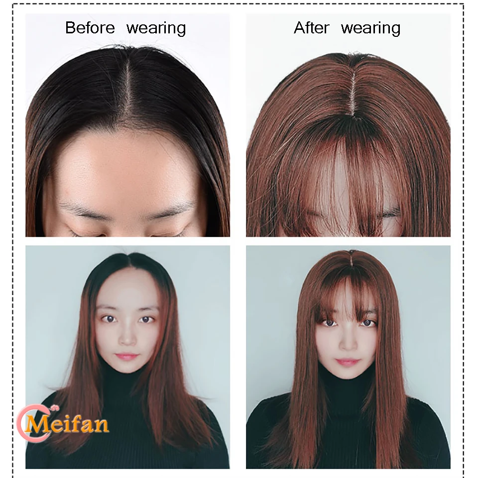 MEIFAN Top Hair Pieces with Bangs Half Head Wig Stright Natural Fluffy Invisible Replacement Synthetic Fake Hair Pieces