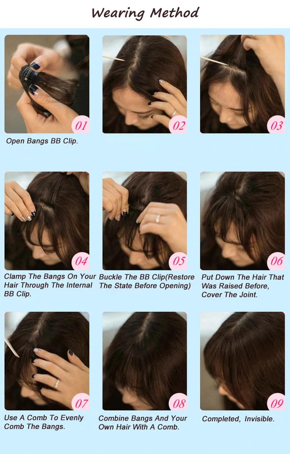 Women Wig Front Blunts Bangs Fake Synthetic Hair Extensions Clip On Fringe Hair Heat Resistant Fashion Hairpieces Extensions