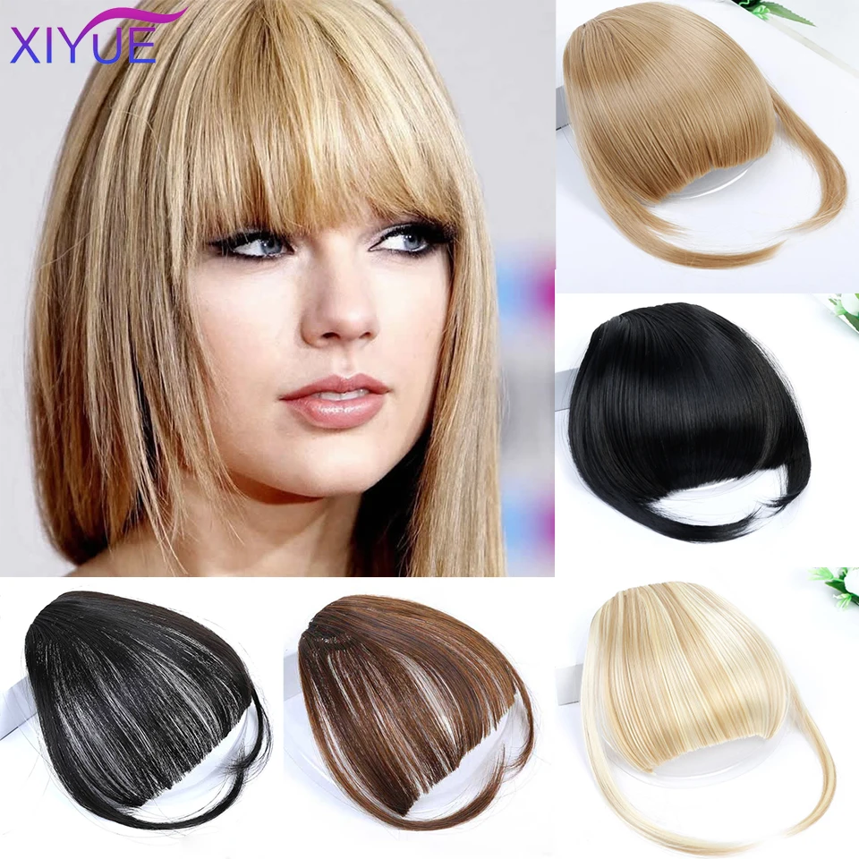 XIYUE Short Front Bangs Clip In Bang Fringe Synthetic Hair Extensions Straight Synthetic Naturaliy Hairpiece Black Brown wig